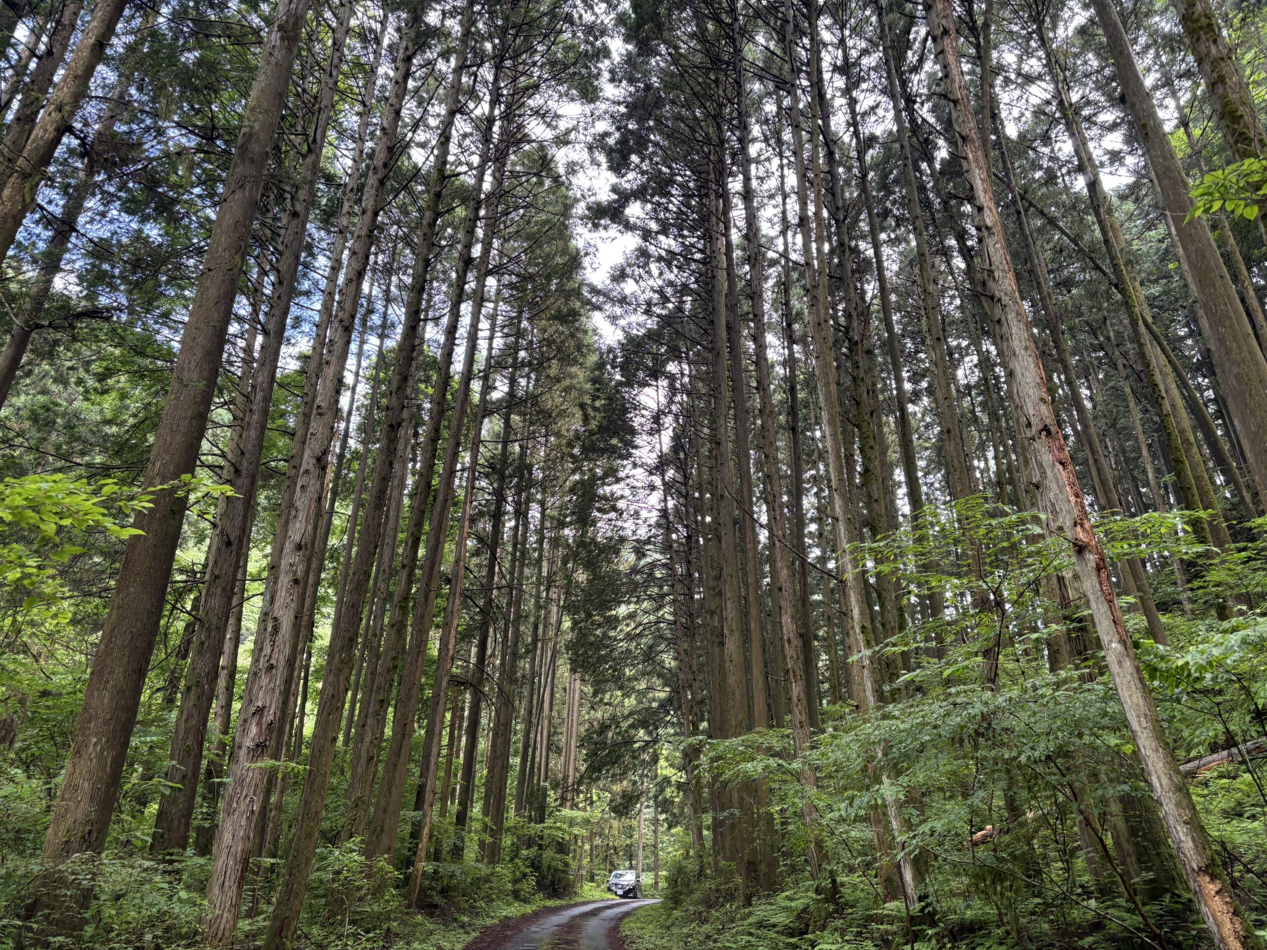 本殿から700mほど手前に社務所と無料駐車場があります。これより先も一応道路はあるのですが、道幅がかなり狭く、運転によほどの自信がある方しかおすすめしません。