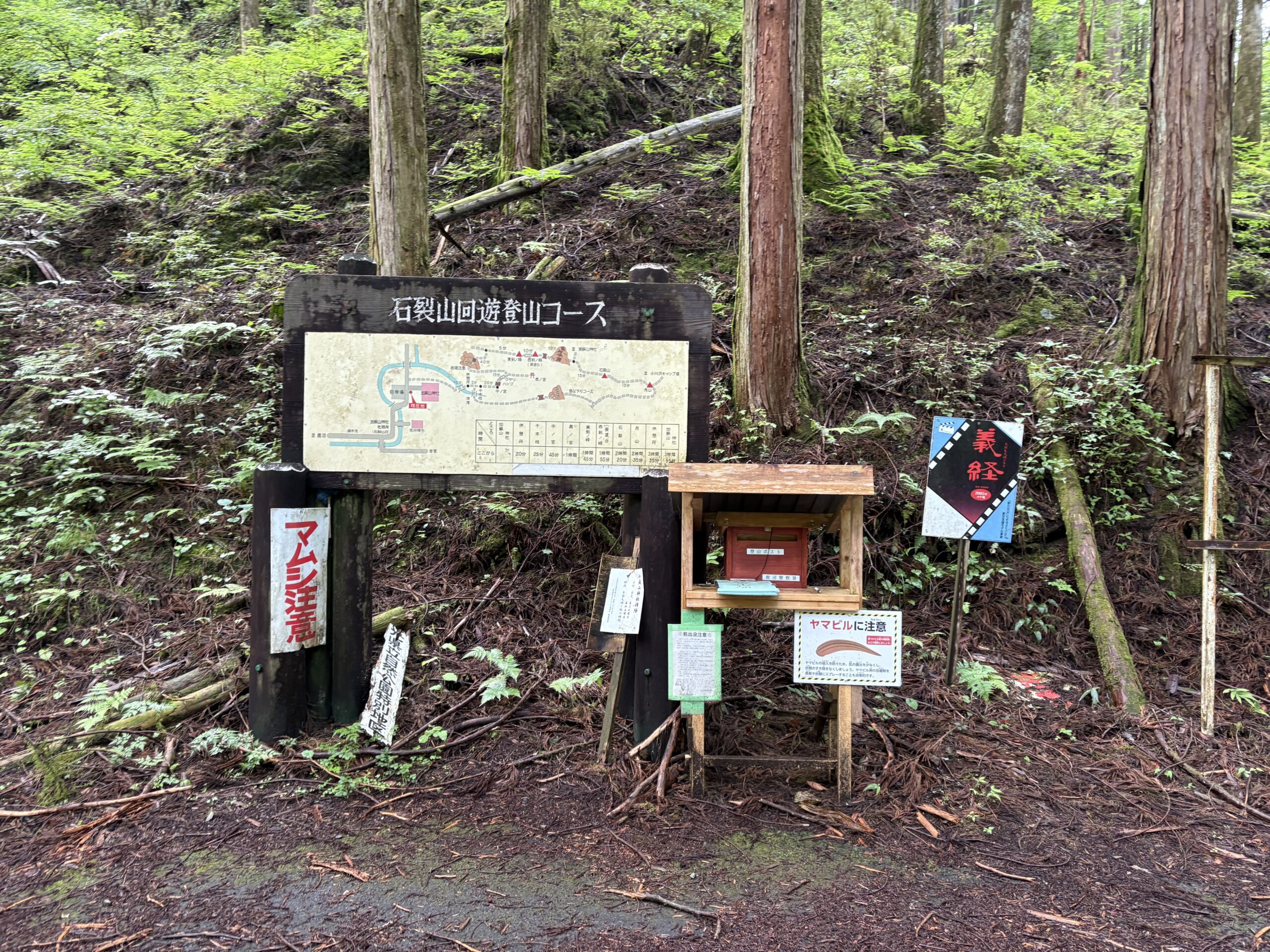 ヤマヒル、熊、マムシ注意の警告があり。民家はもちろん、人も居ないので女性の一人参詣はおすすめしません。電波も通じないですし、そのまま登山を計画される場合は、天候や装備に十分注意し、事前に登山ルートや所要時間を確認することをおすすめします。