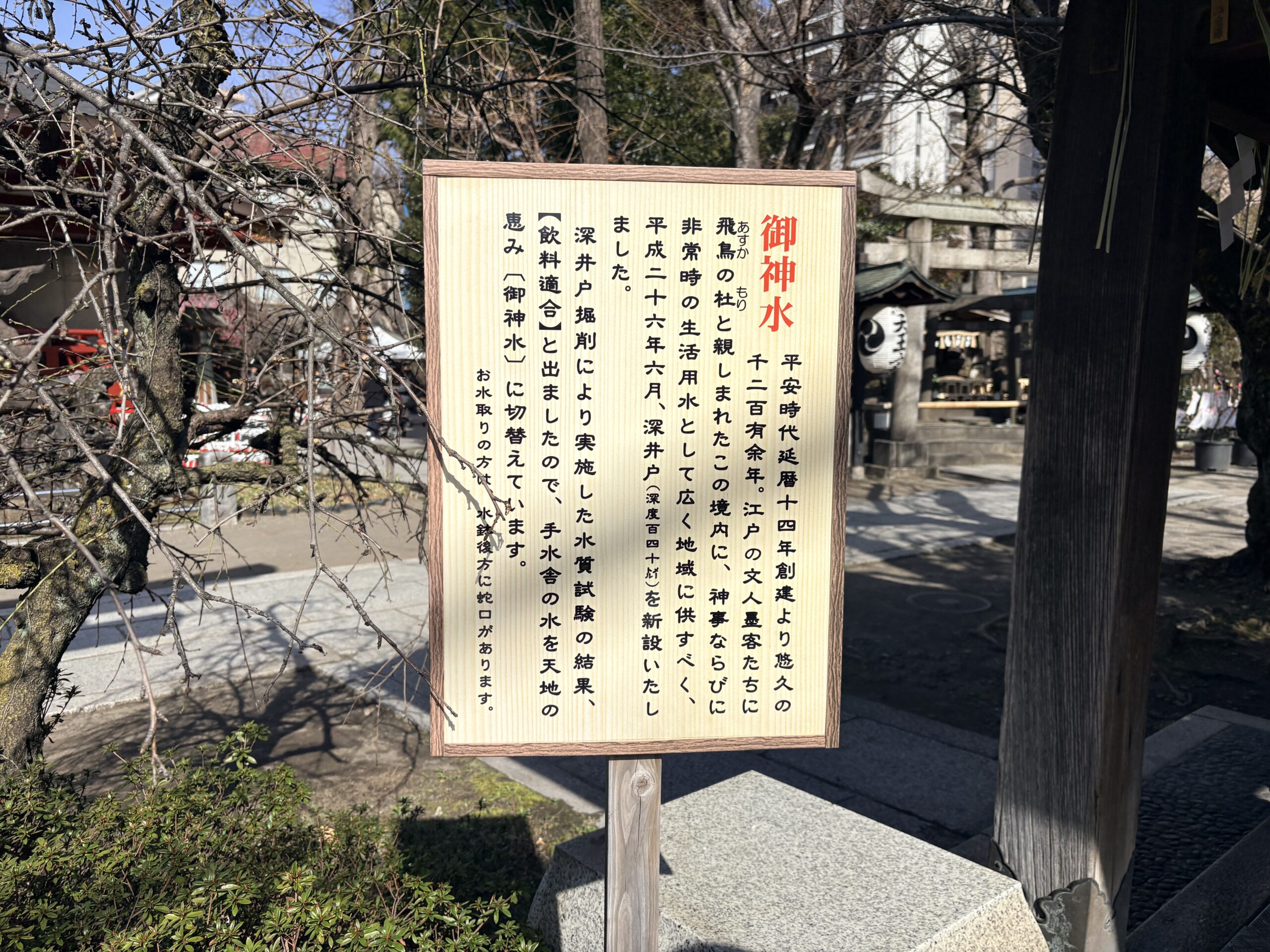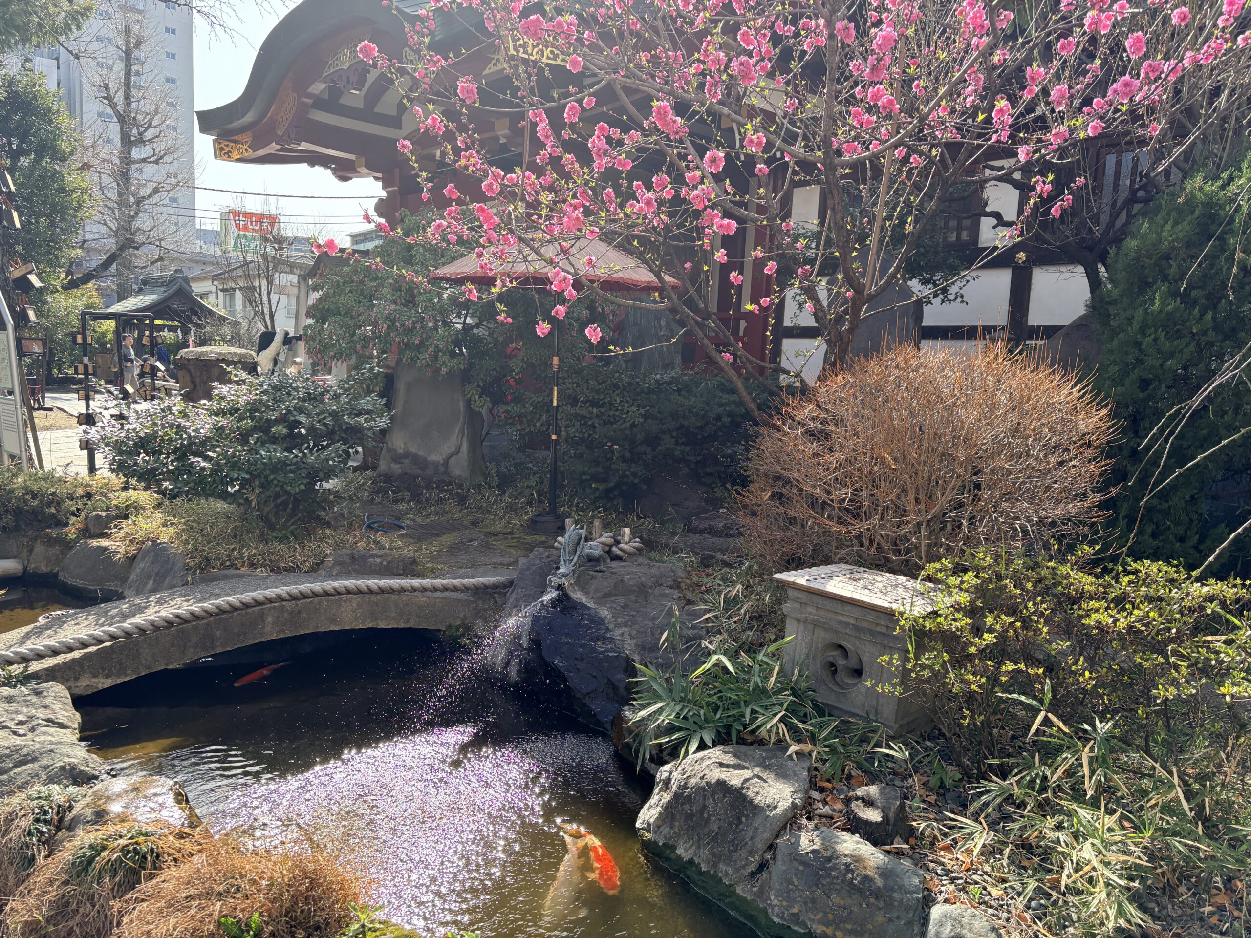 が残る東京でもかなり「江戸らしい神社」の1つ。梅の写真を撮っていたら、おばあさんが声をかけてくれたり、境内の雰囲気も下町っぽい賑やかさがありました。